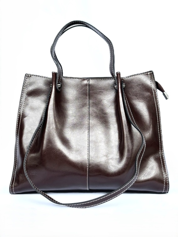 Torebka została wykonana z wysokiej jakości skóry naturalnej, dzięki czemu wyróżnia się trwałością i ponadczasowym stylem. Jej prosty, elegancki fason w kolorze głębokiego brązu sprawia, że pasuje zarówno do pracy, jak i codziennych stylizacji.